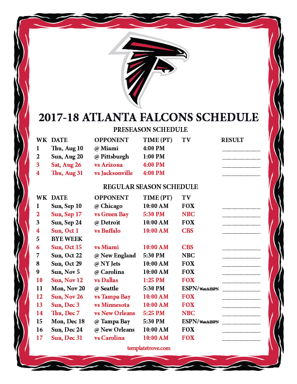 Keep up with the Atlanta Falcons in the 2017-18 season with our