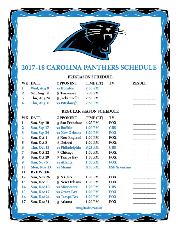 Keep up with the Carolina Panthers in the 2017-18 season with