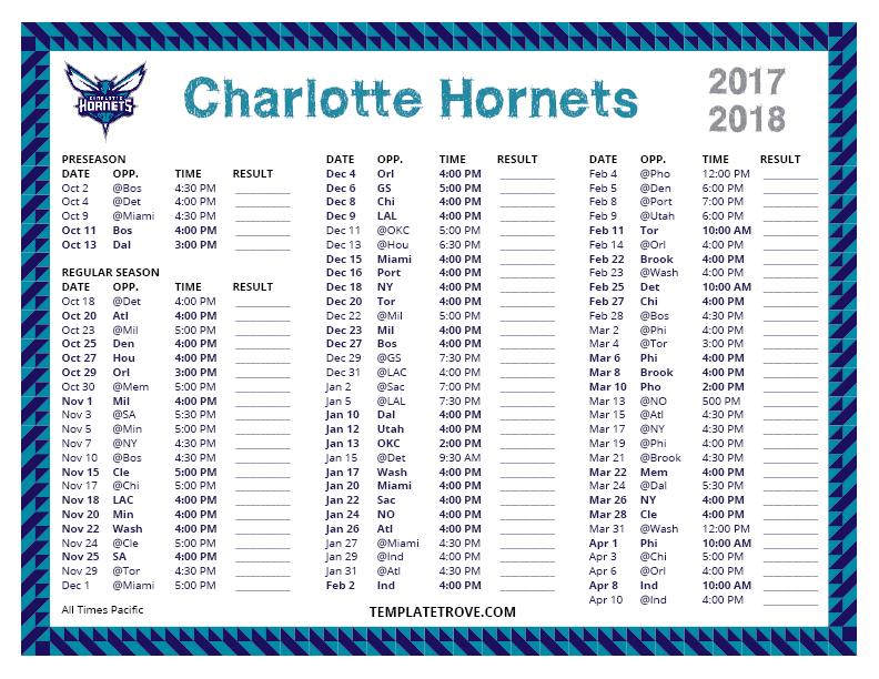Keep up with the Charlotte Hornets in the 2017-18 season with our