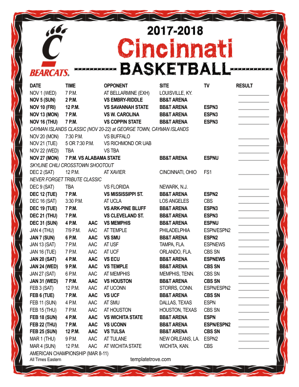 2017-18 College Basketball Schedules