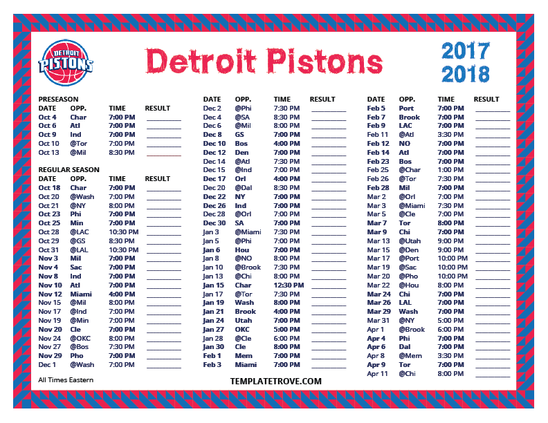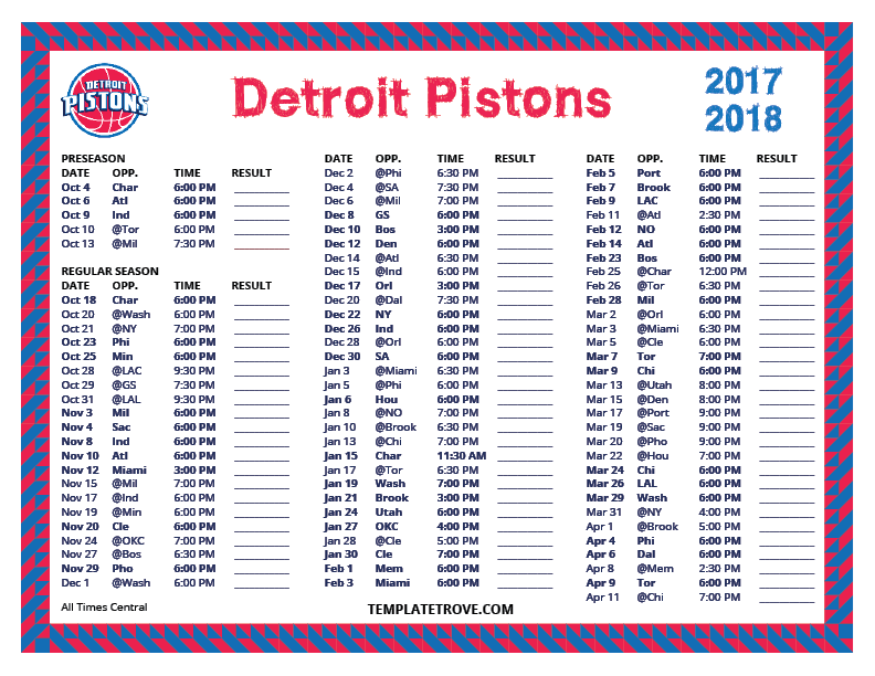 Keep up with the Detroit Pistons in the 2017-18 season with our