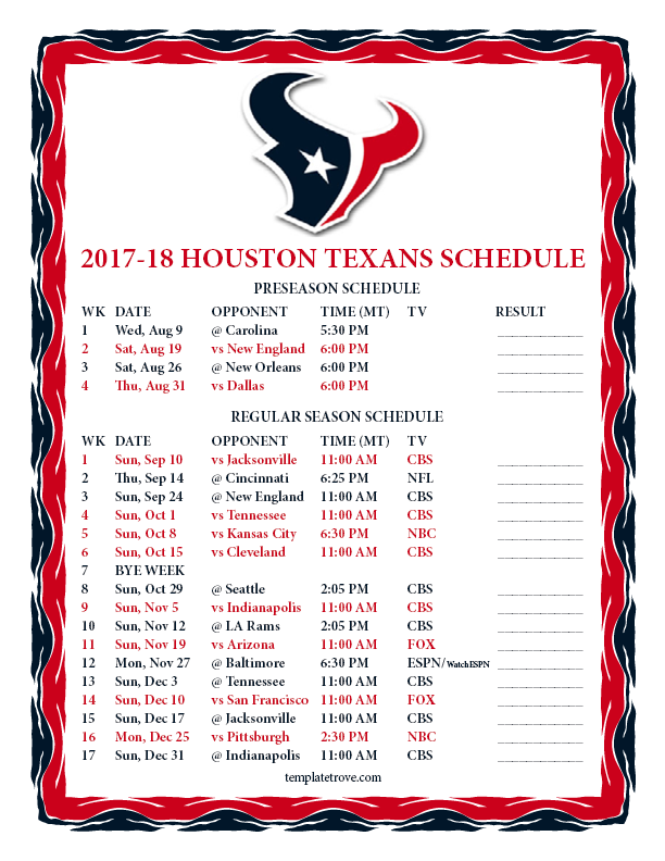Keep up with the Houston Texans in the 2017-18 season with our