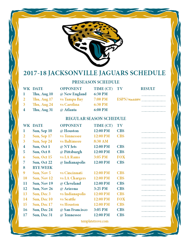 Keep up with the Jacksonville Jaguars in the 2017-18 season with