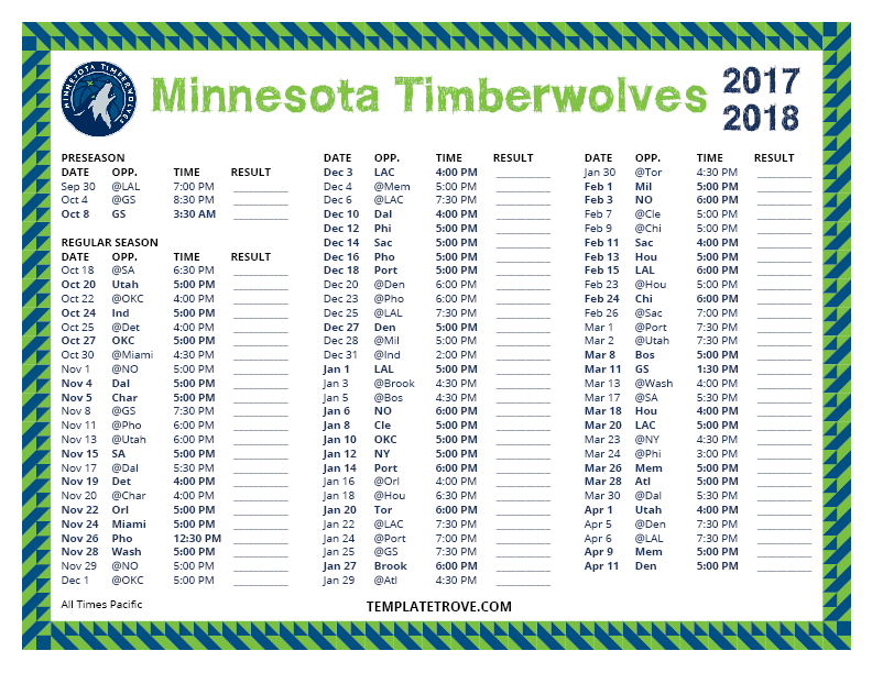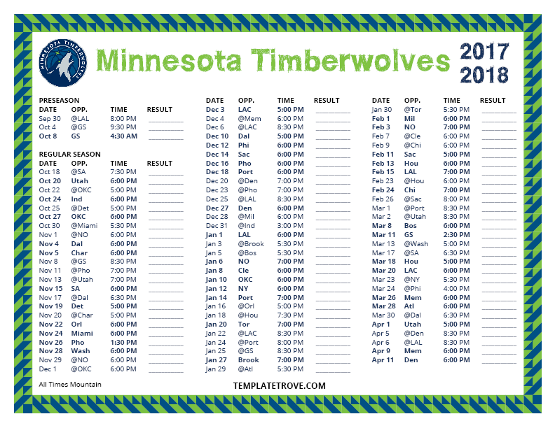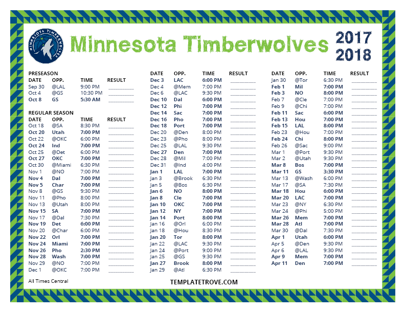 Keep up with the Minnesota Timberwolves in the 2017-18 season with our
