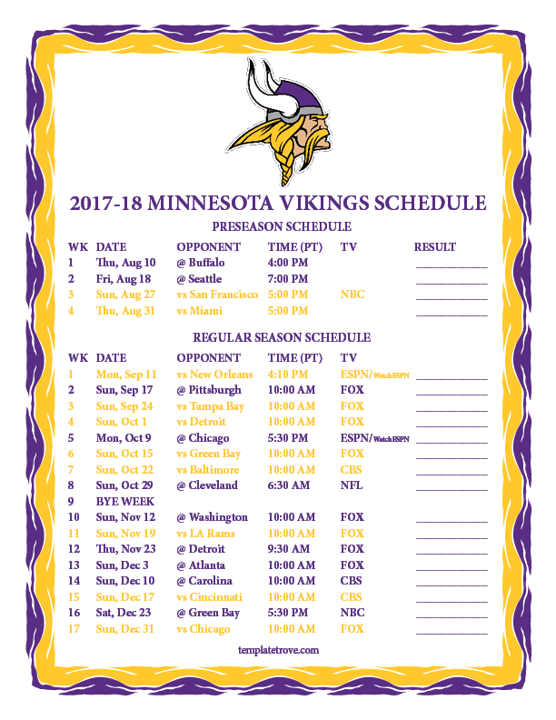 Keep up with the Minnesota Vikings 2017-18 season with our free