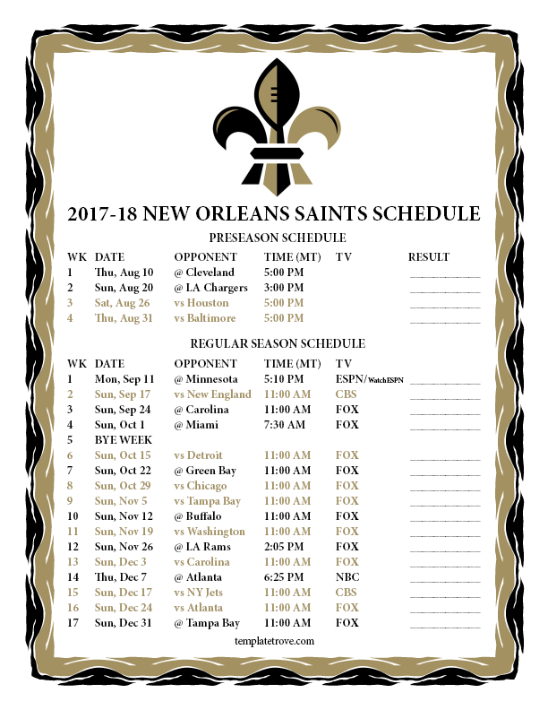 Keep up with the New Orleans Saints 2017-18 season with our free