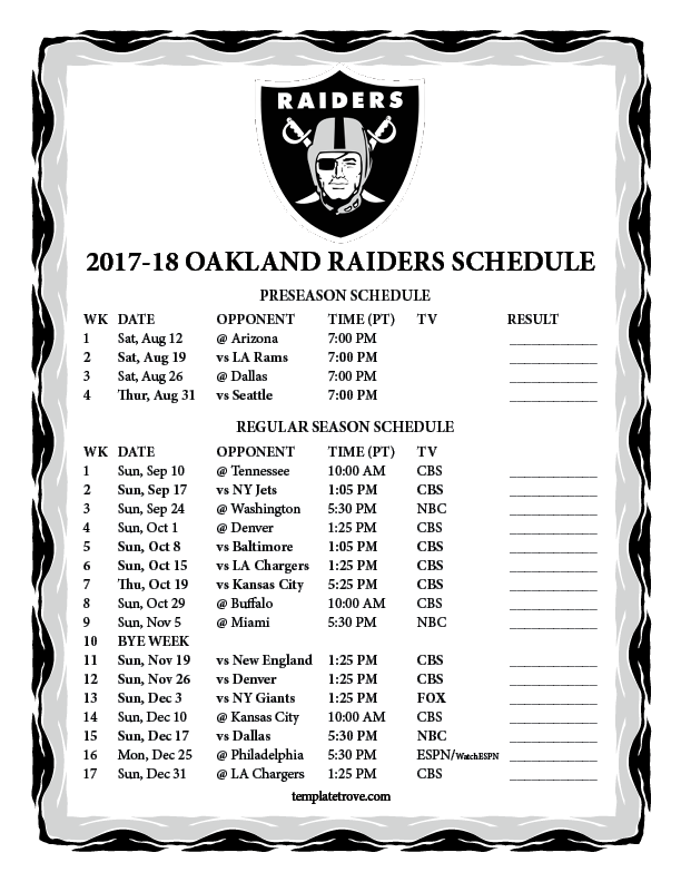 Keep up with the Oakland Raiders 2017-18 season with our free
