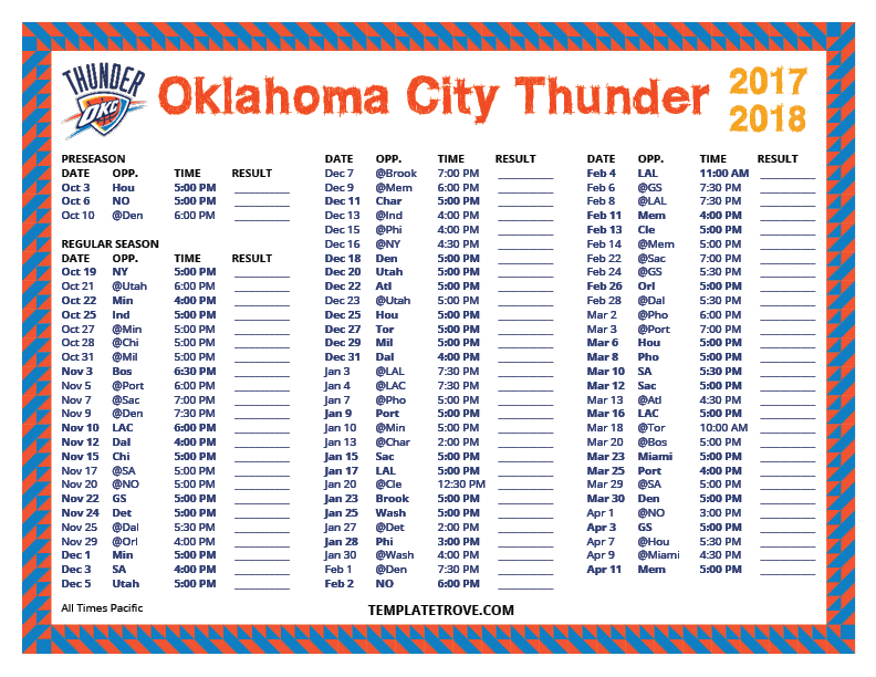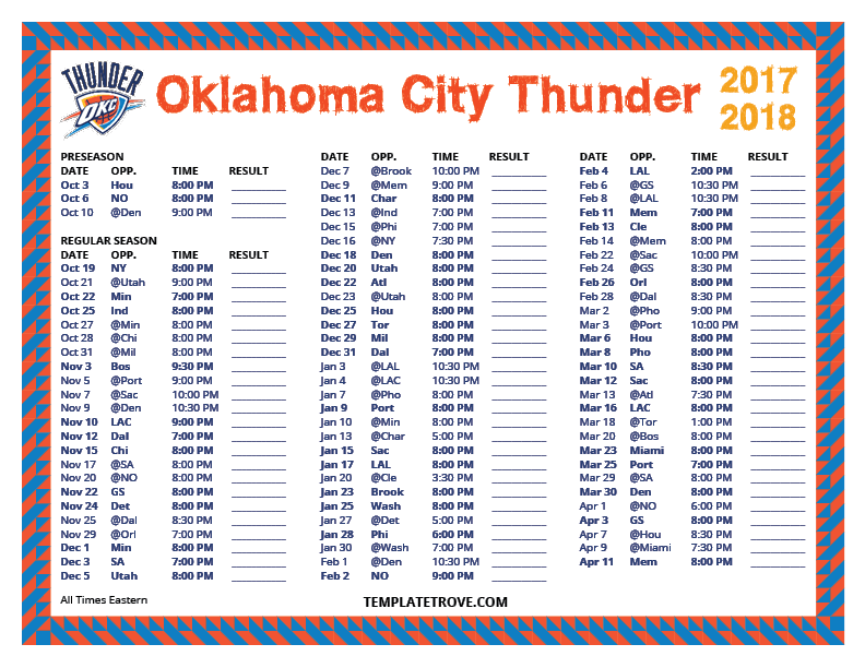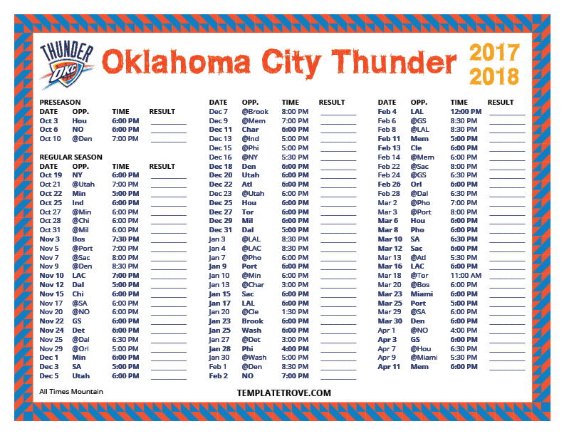 Keep up with the Oklahoma City Thunder in the 2017-18 season with our