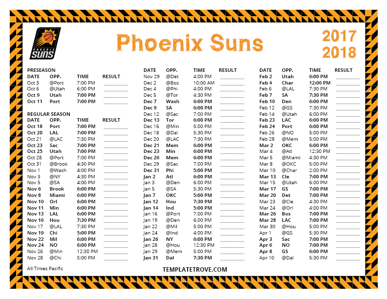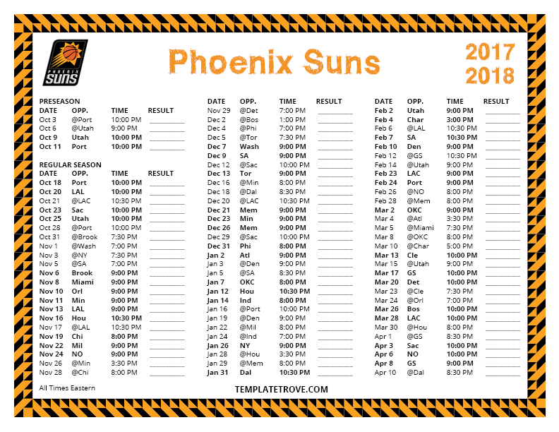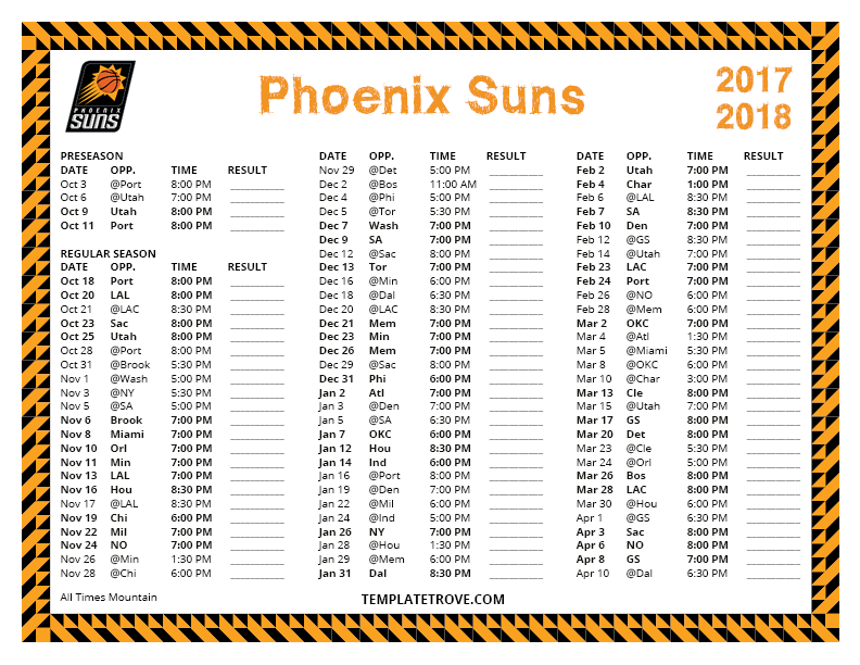 Keep up with the Phoenix Suns in the 2017-18 season with our