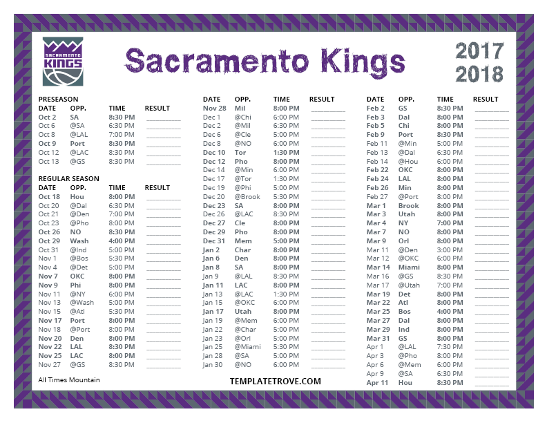 Keep up with the Sacramento Kings in the 2017-18 season with our