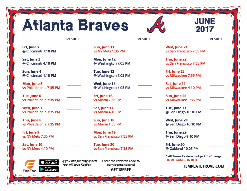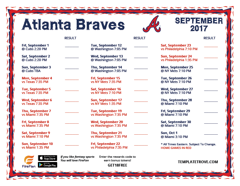 Keep up with the 2017 Atlanta Braves with our handy printable schedules.