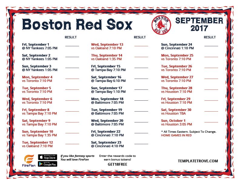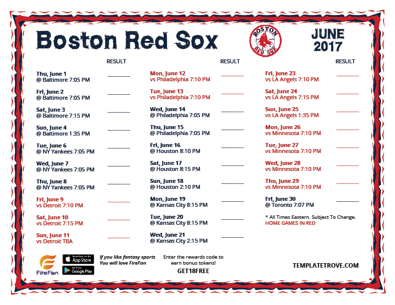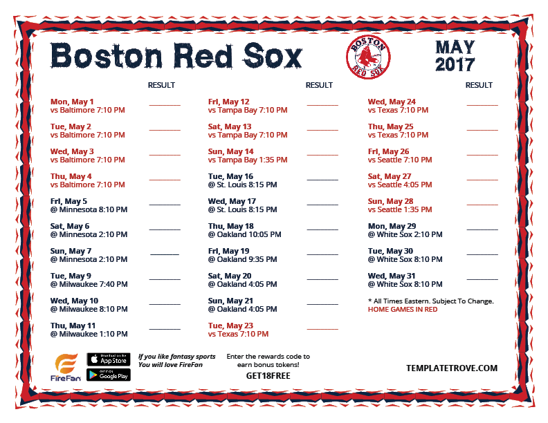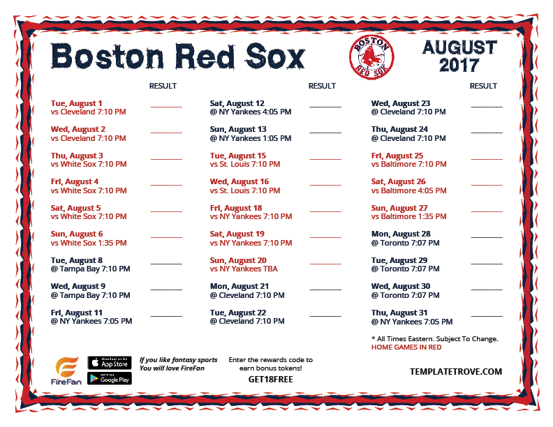 Keep up with the 2017 Boston Red Sox with our handy printable schedules.
