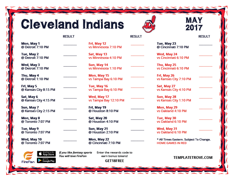 Keep up with the 2017 Cleveland Indians with our handy printable schedules.