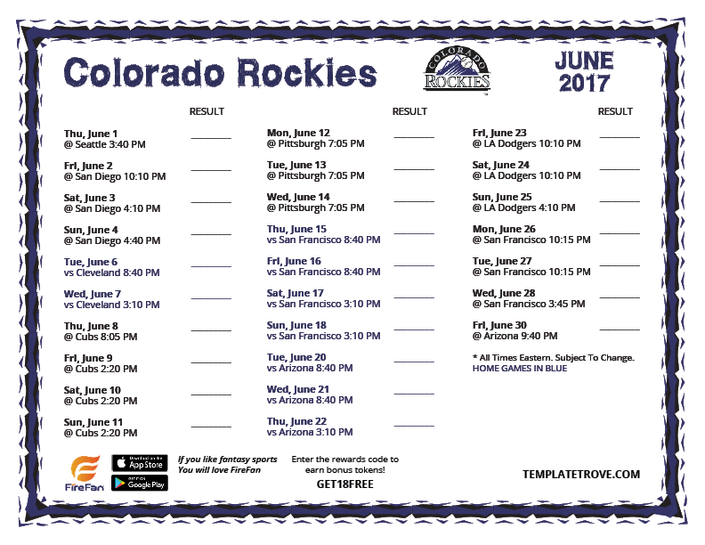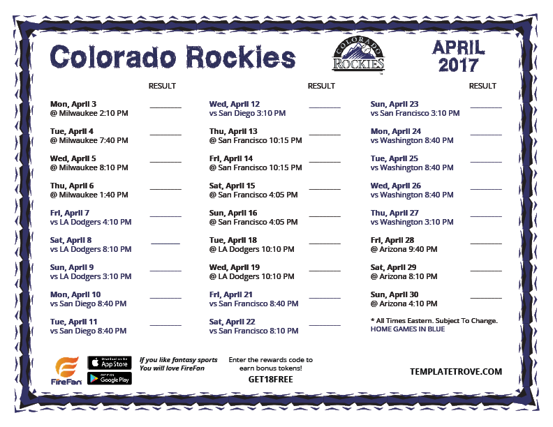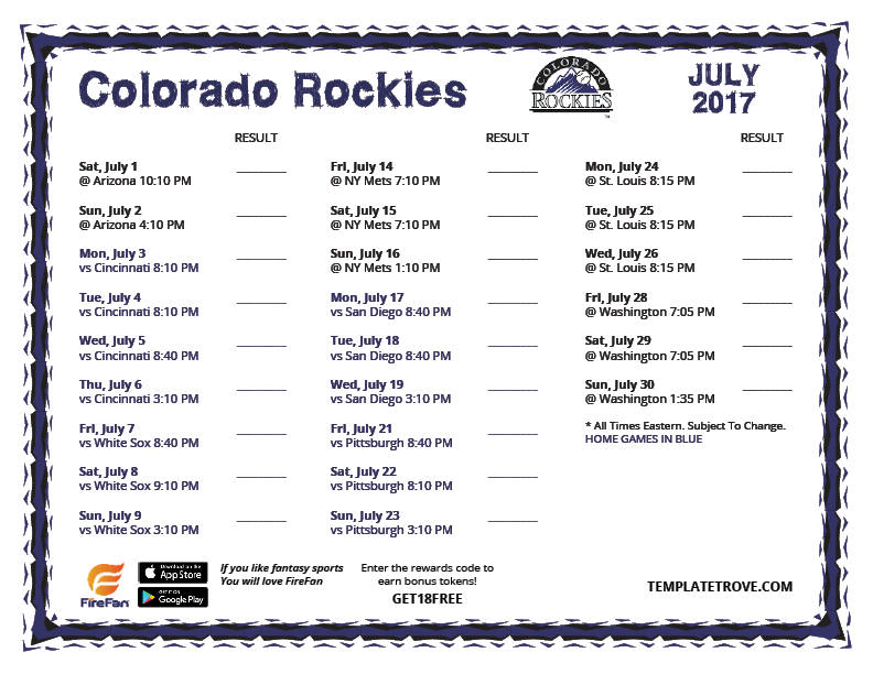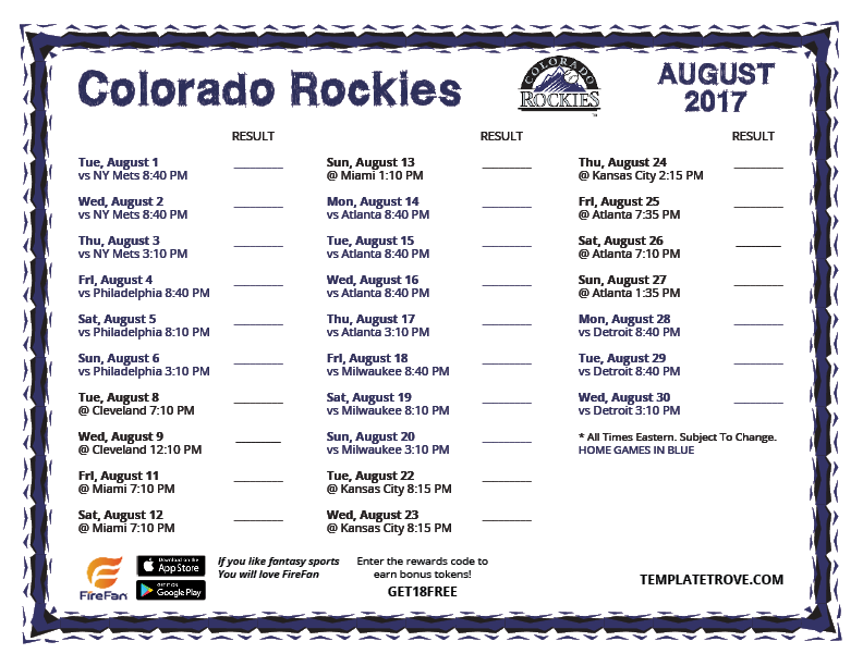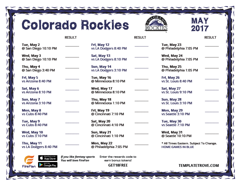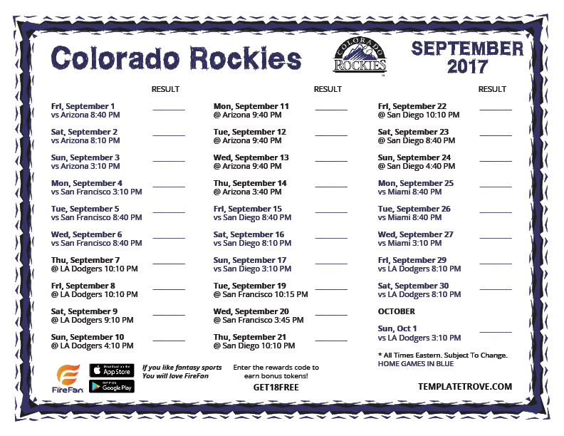 Keep up with the 2017 Colorado Rockies with our handy printable schedules.
