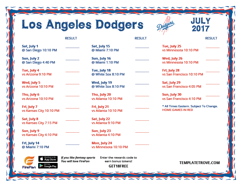 July 2017 Dodgers Schedule