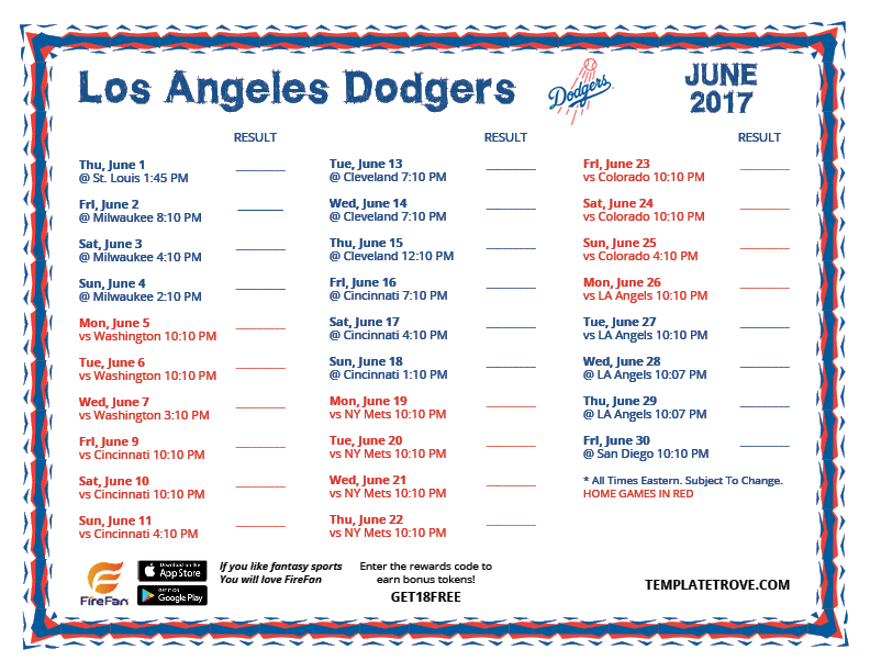 June 2017 Dodgers Schedule
