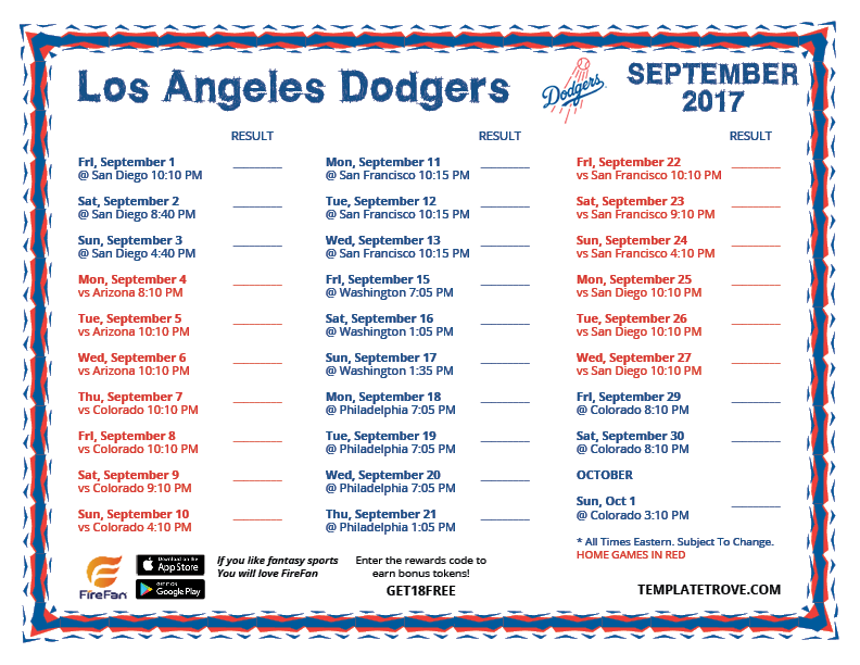 Keep up with the 2017 Los Angeles Dodgers with our handy printable schedules.