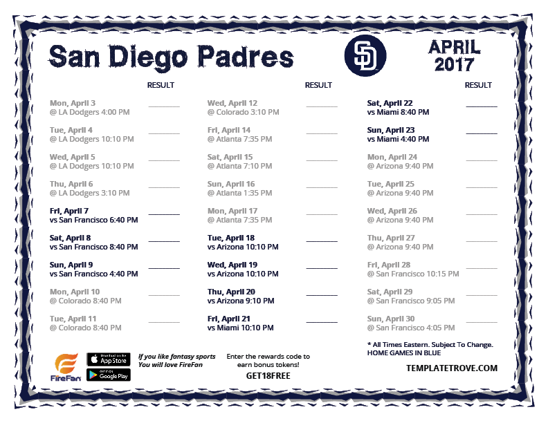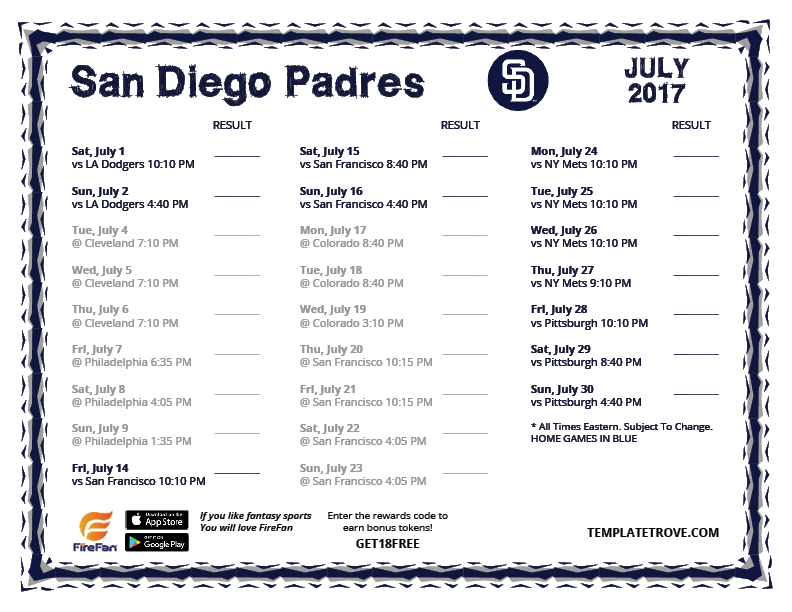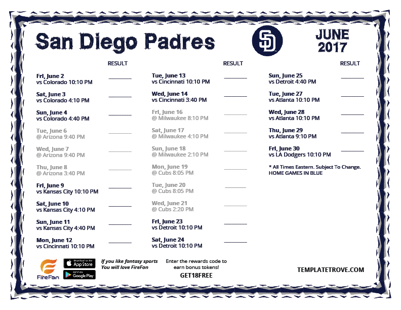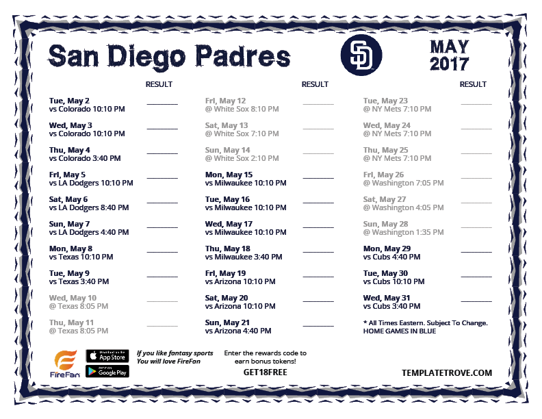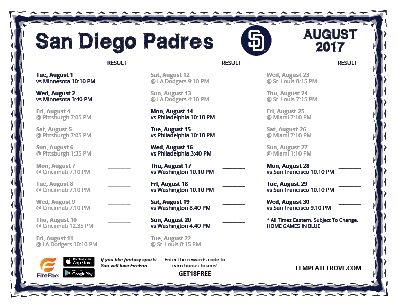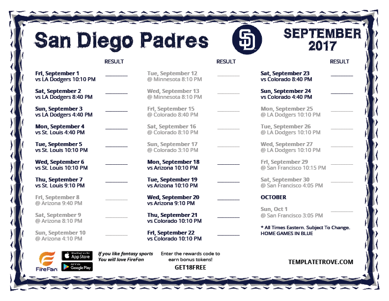 Keep up with the 2017 San Diego Padres with our handy printable schedules.