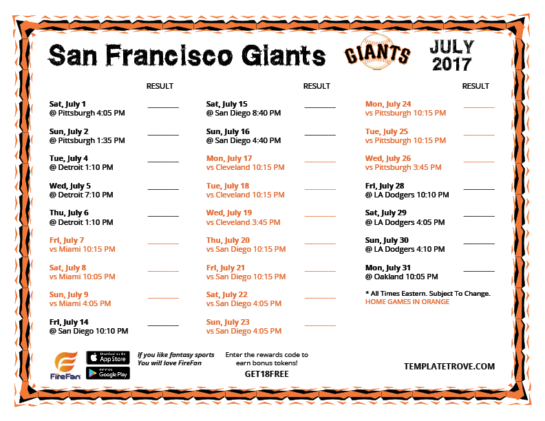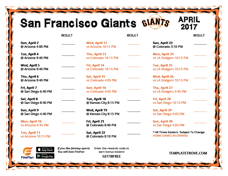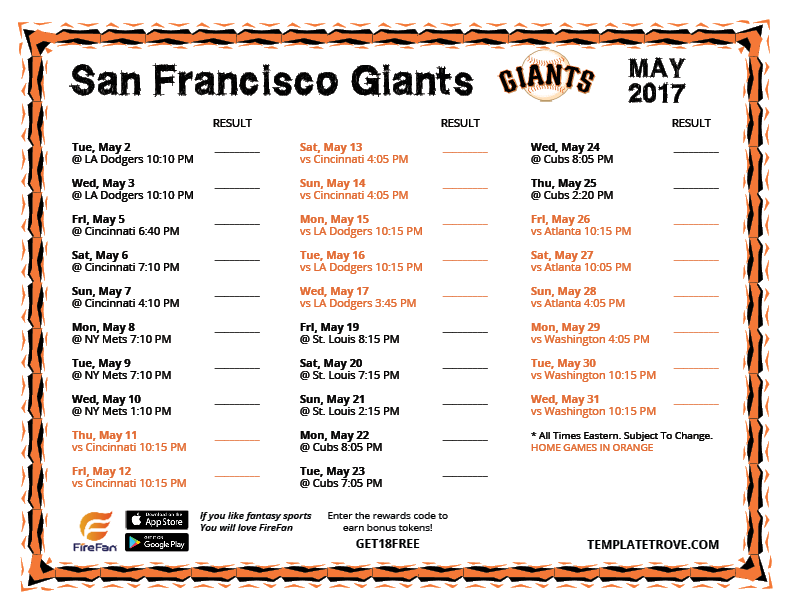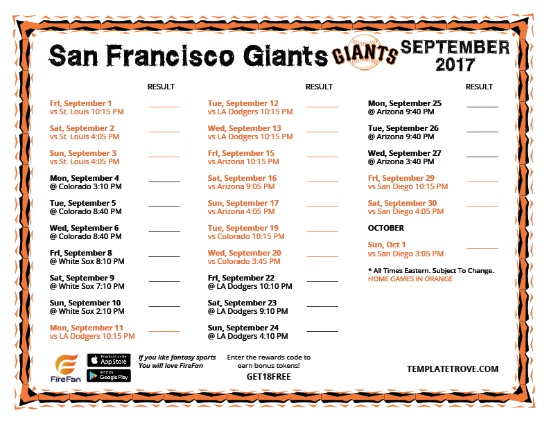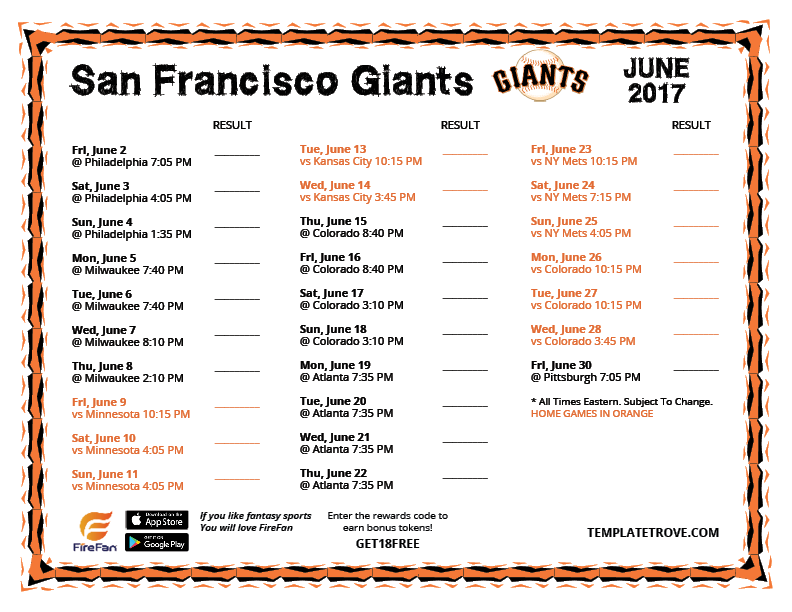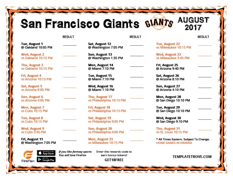 Keep up with the 2017 San Francisco Giants with our handy printable schedules.