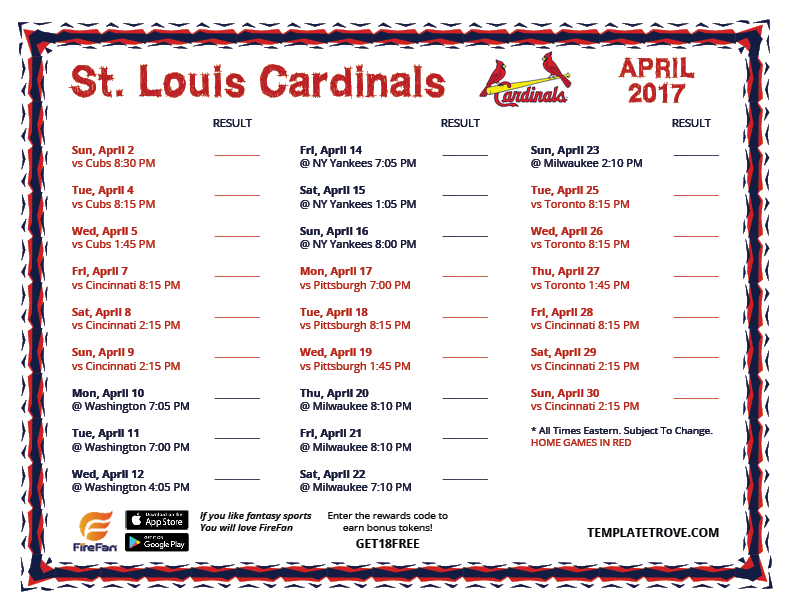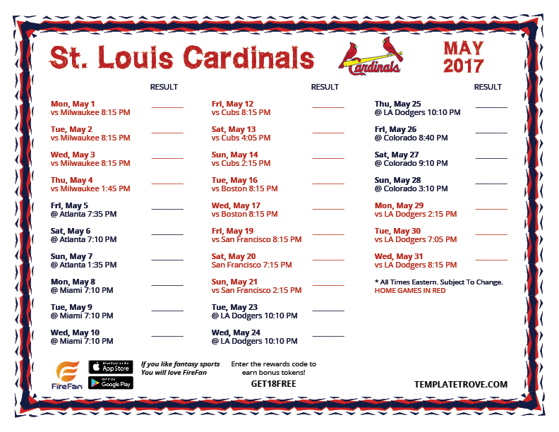 Keep up with the 2017 St. Louis Cardinals with our handy printable schedules.