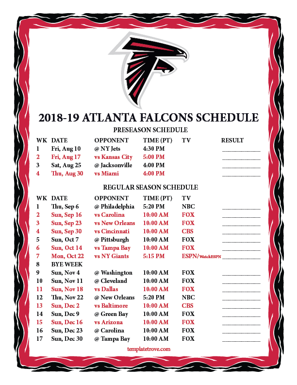 Keep up with the Atlanta Falcons in the 2018-19 season with our