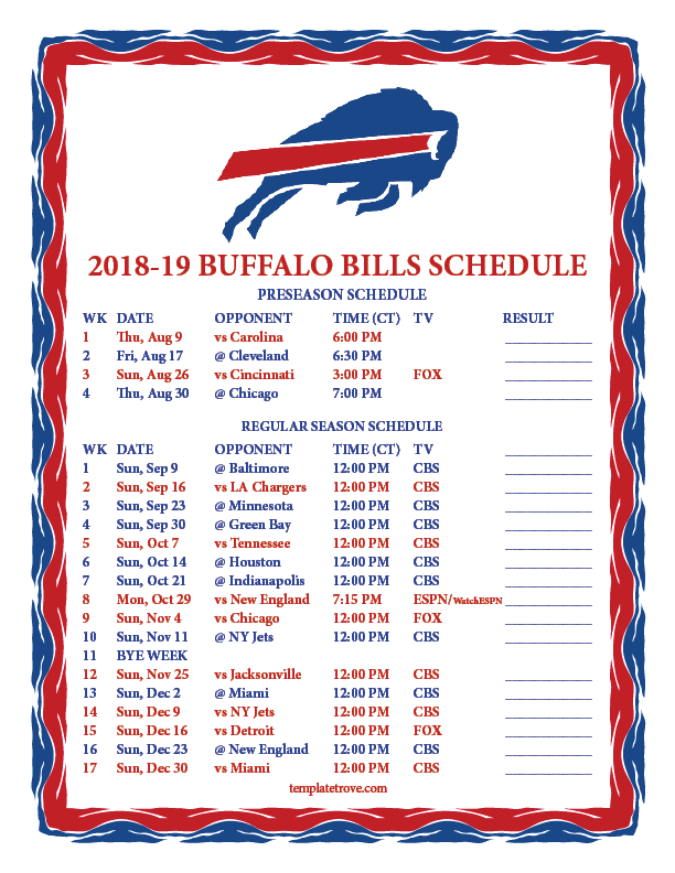 Keep up with the Buffalo Bills in the 2018-19 season with our