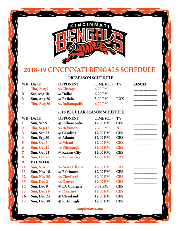 Keep up with the Cincinnati Bengals in the 2018-19 season with
