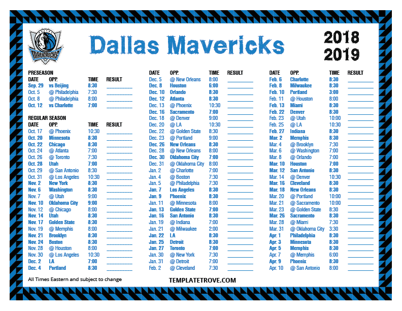 Keep up with the Dallas Mavericks in the 2018-19 season with our