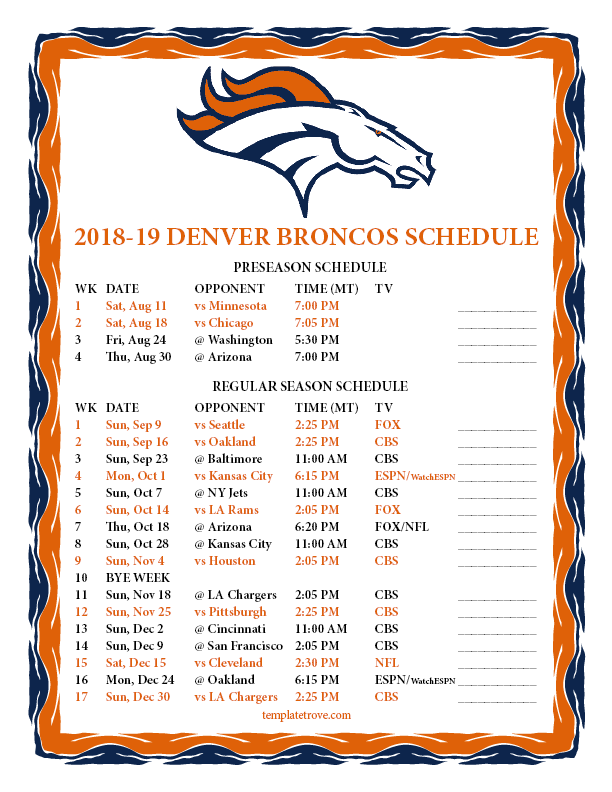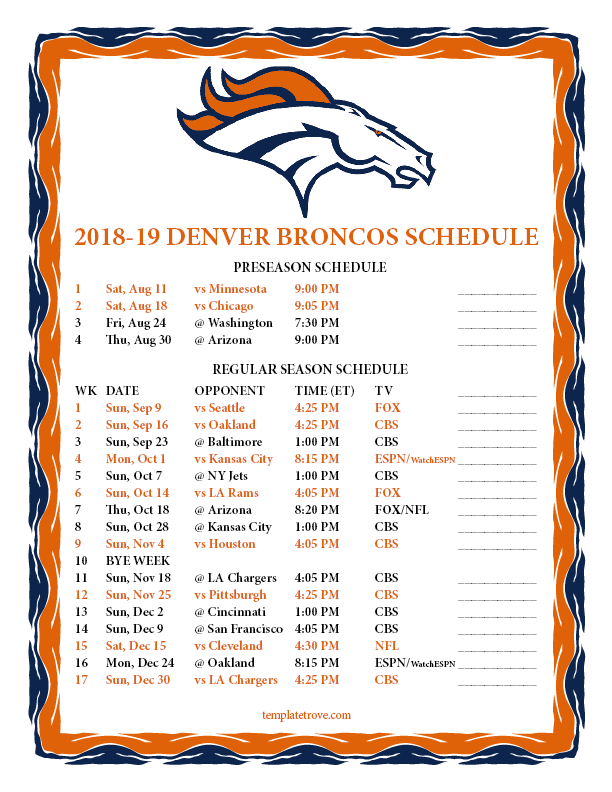 Keep up with the Denver Broncos in the 2018-19 season with our