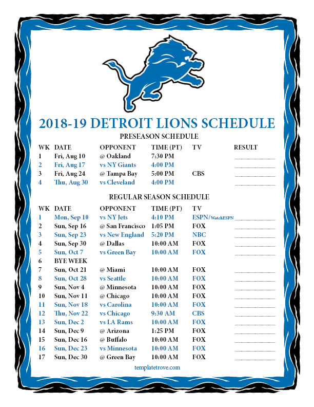 Keep up with the Detroit Lions in the 2018-19 season with our