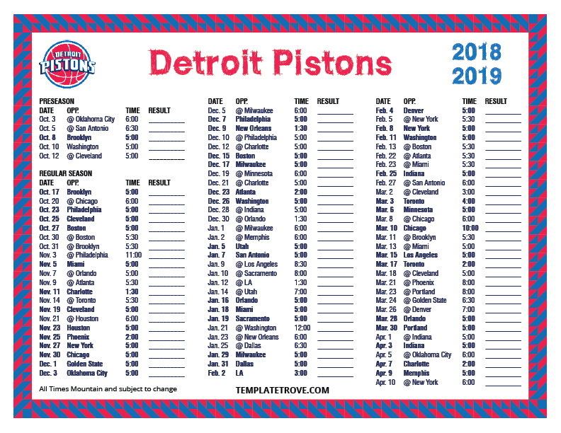 Keep up with the Detroit Pistons in the 2018-19 season with our