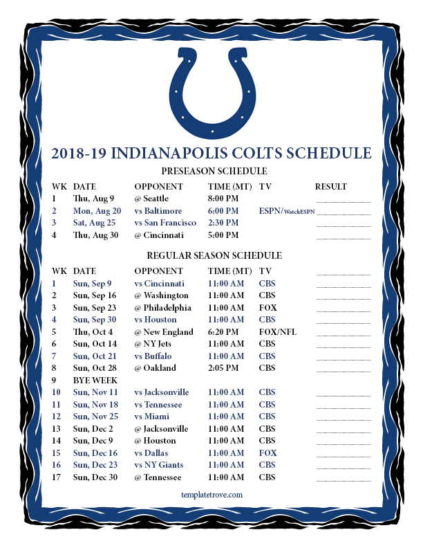 Keep up with the Inidanapolis Colts in the 2018-19 season