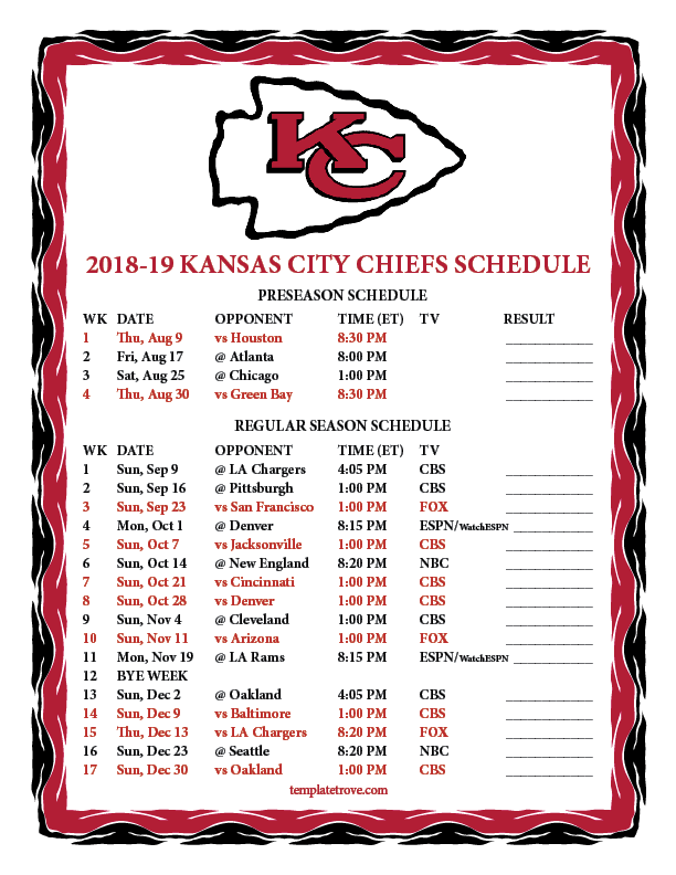 Keep up with the Kansas City Chiefs in the 2018-19 season with