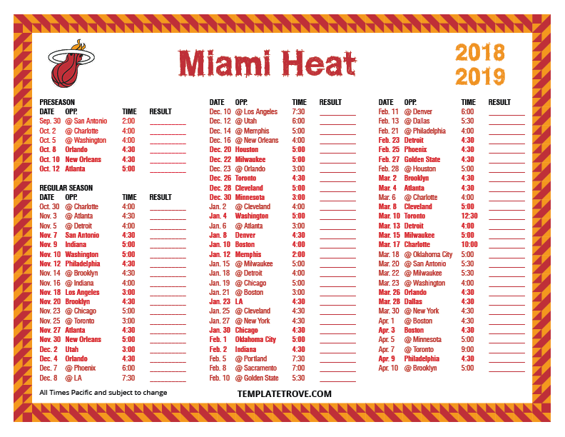 free printable schedules. Includes pre-season and regular season games and a space to write in results.