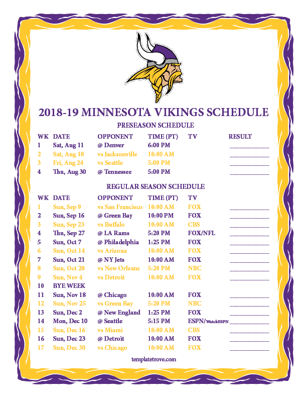 Keep up with the Minnesota Vikings 2018-19 season with our free
