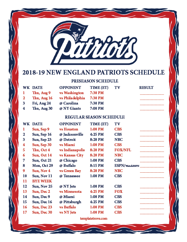free printable schedules. Includes pre-season and regular season, TV