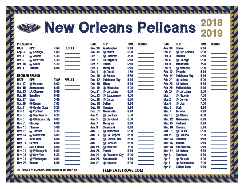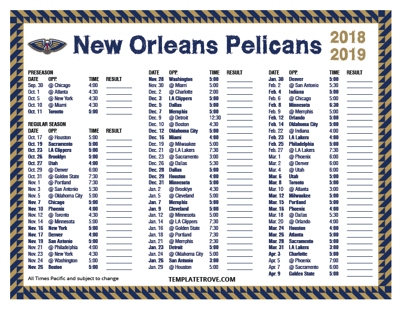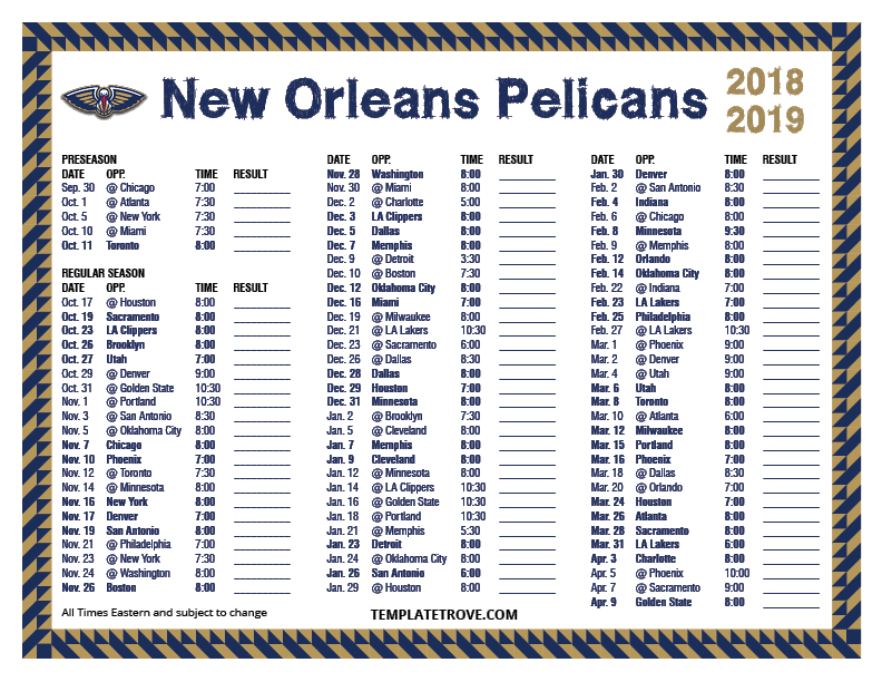 Keep up with the New Orleans Pelicans in the 2018-19 season with our