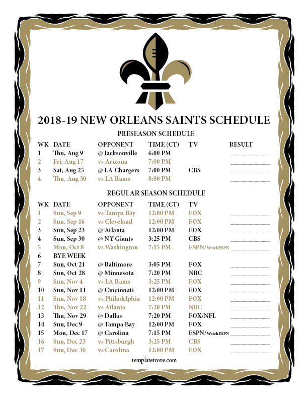 Keep up with the New Orleans Saints 2018-19 season with our free