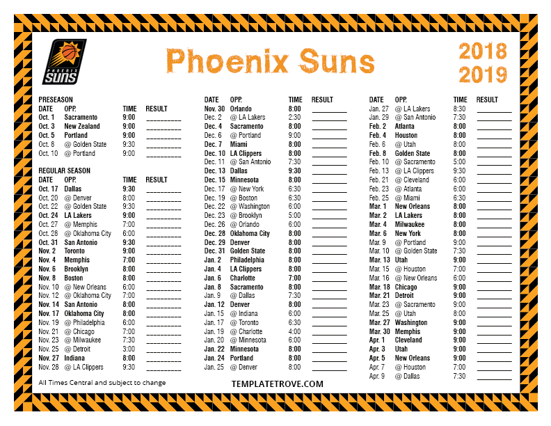 Keep up with the Phoenix Suns in the 2018-19 season with our