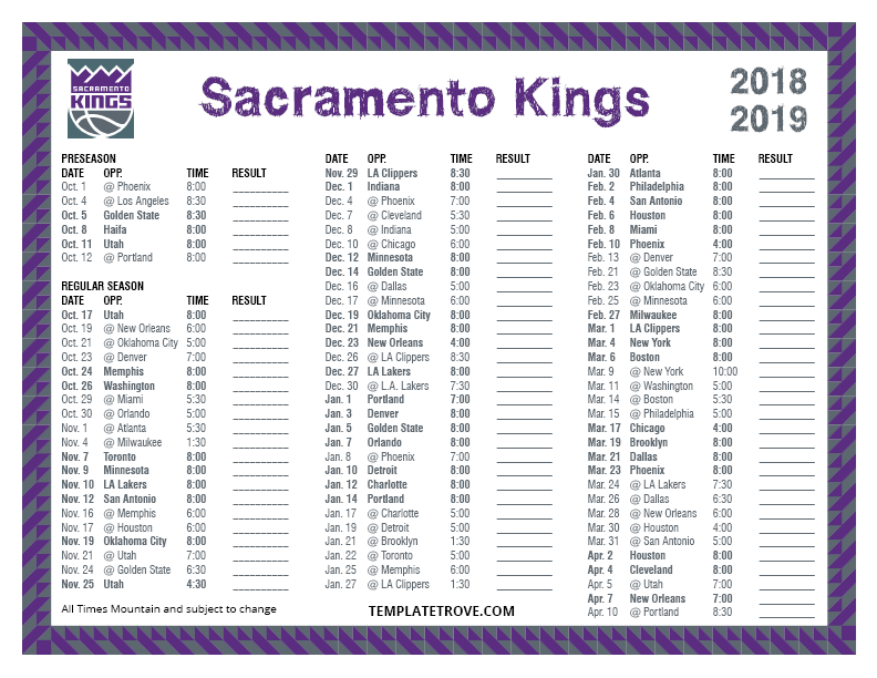 Keep up with the Sacramento Kings in the 2018-19 season with our