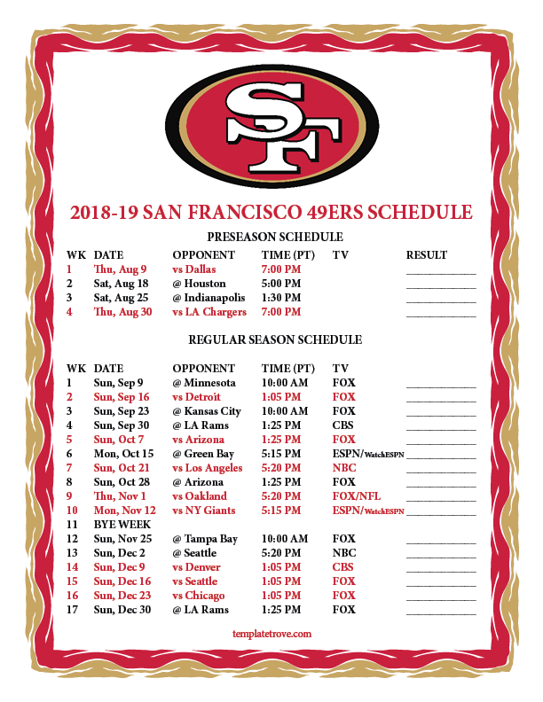 Keep up with the San Francisco 49ers 2018-19 season with our