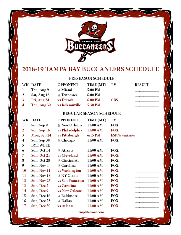 Keep up with the Tampa Bay Buccaneers 2018-19 season with our