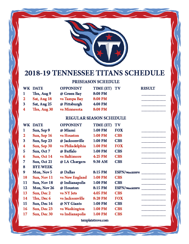 Keep up with the Tennessee Titans 2018-19 season with our free