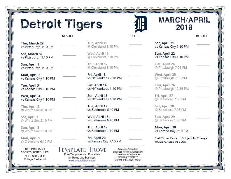 March/April 2018 Tigers Schedule
