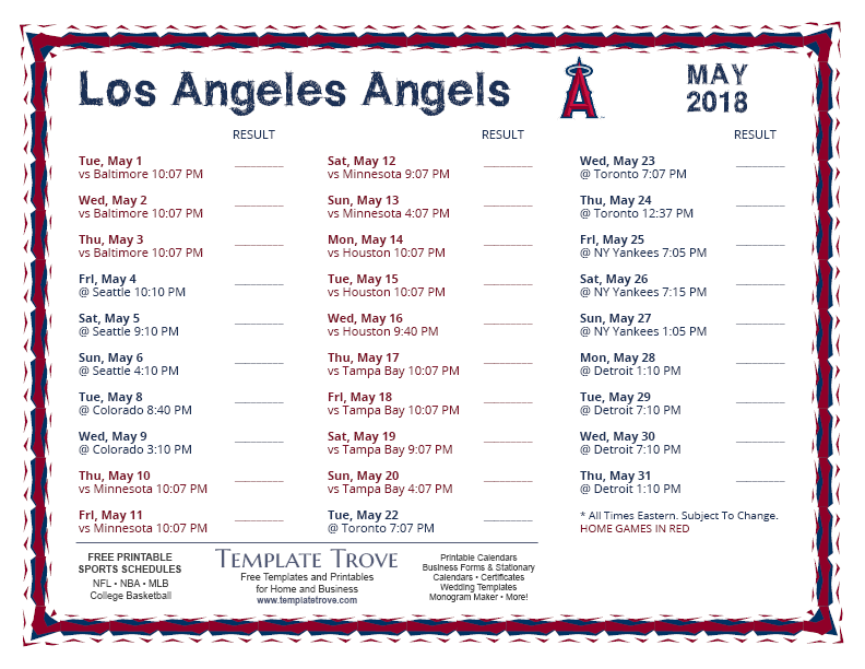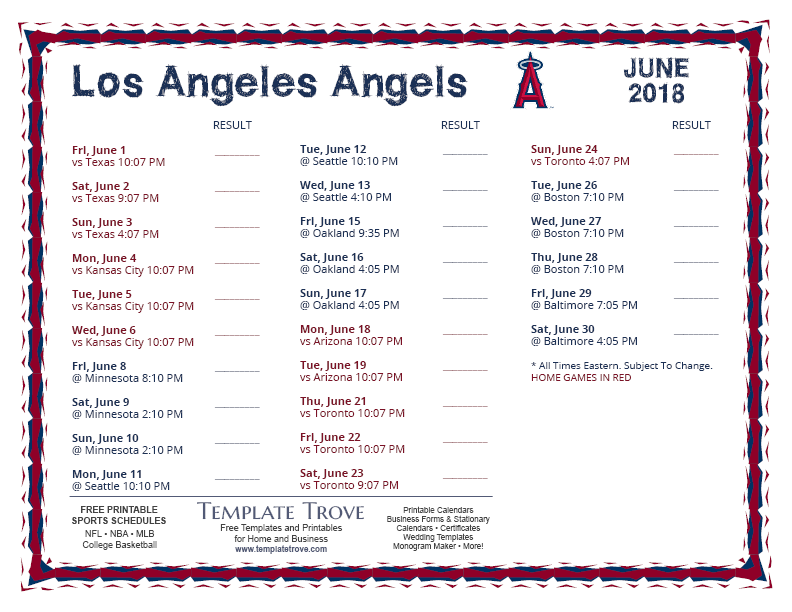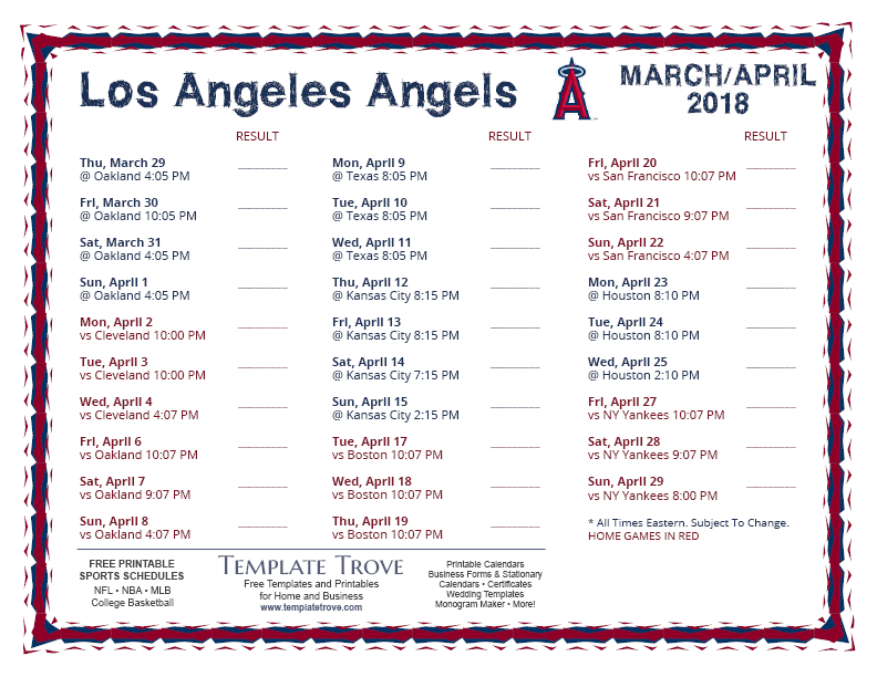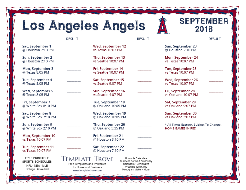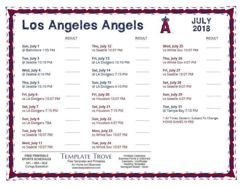 Keep up with the 2018 Los Angeles Angels with our handy printable schedules, now available for each US time zone.