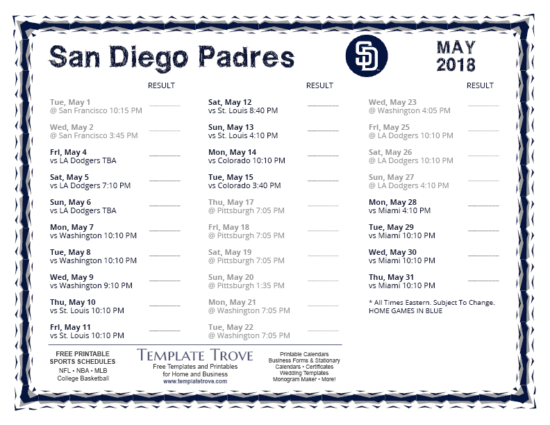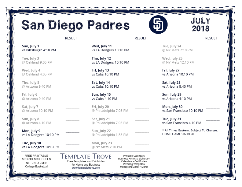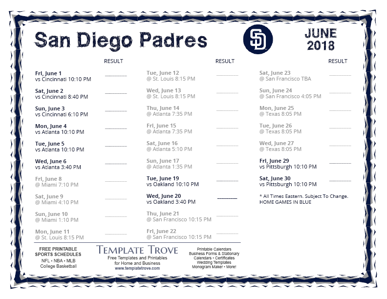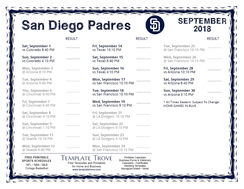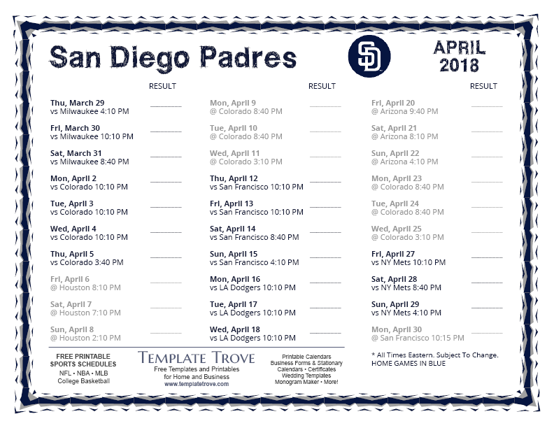 Keep up with the 2018 San Diego Padres with our handy printable schedules, now available for each US time zone.