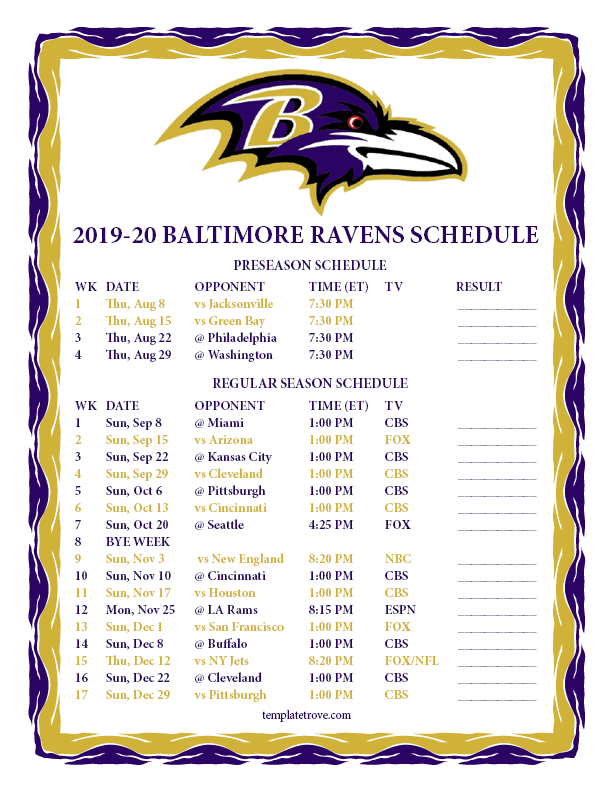 Keep up with the Baltimore Ravens in the 2019-20 season with our