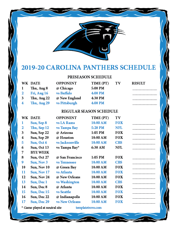 our free printable schedules. Includes pre-season and regular