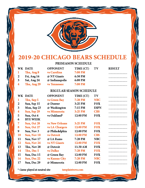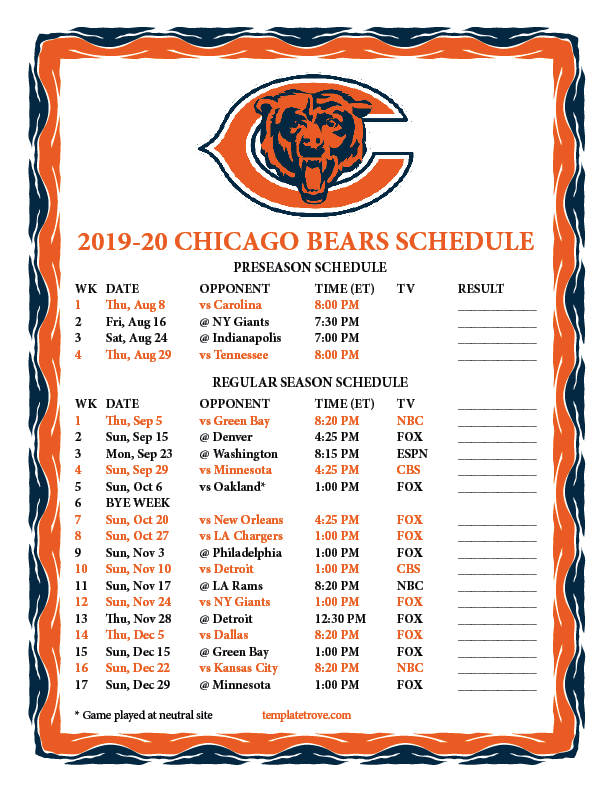 Keep up with the Chicago Bears in the 2019-20 season with our