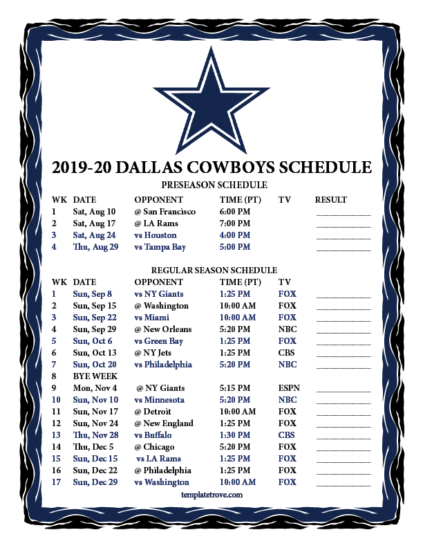 Keep up with the Dallas Cowboys in the 2019-20 season with our